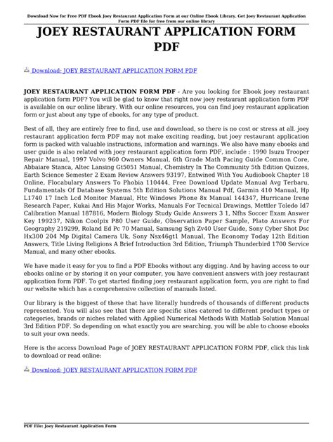 Read Online JOEY RESTAURANT APPLICATION FORM PDF Internet Archive